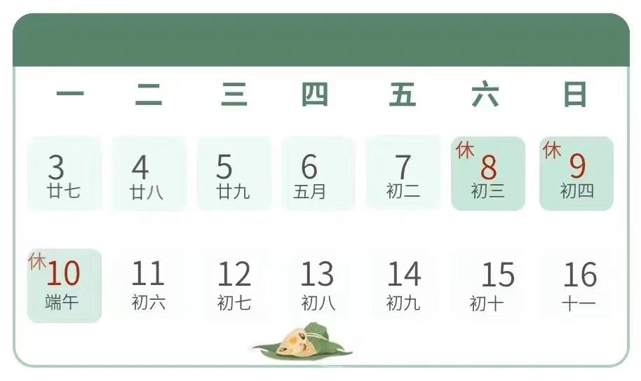 放假時(shí)間:2024年6月8日(周六)至2024年6月10日(周一)放假,共3天;