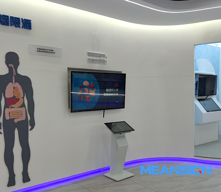 在館內(nèi)每個主題展區(qū)空閑區(qū)域,放置臥式觸摸一體機,以人機交互的方式,為觀眾提供趣味性、互動性、科學(xué)性、安全性的體驗,提高觀眾的參與度,深入了解生命健康原理,自動查詢健康知識、健康技能。