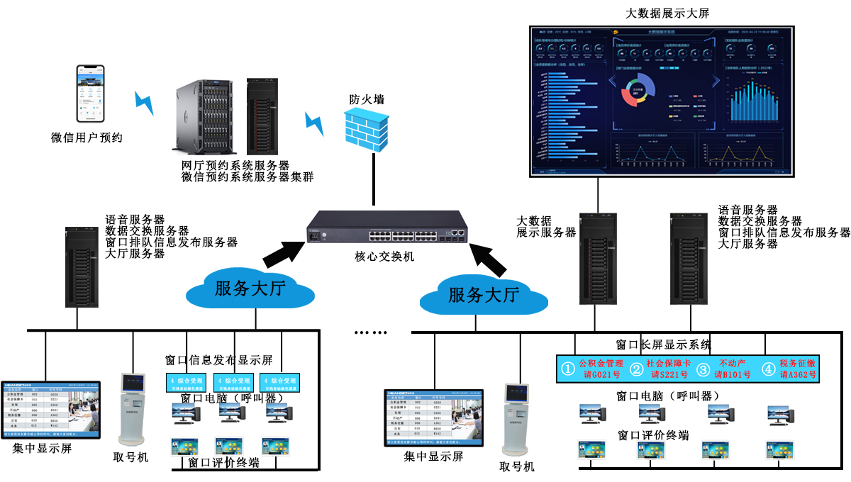 排隊叫號系統(tǒng)顯示設備可以是單雙色LED屏,也可以是液晶顯示屏,用于展示排隊數(shù)據(jù),也可以從液晶顯示屏出發(fā)聲,